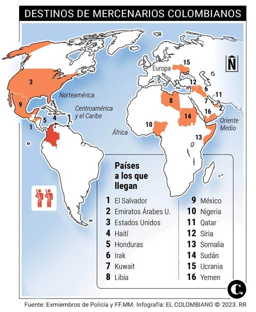 Es importante establecer, que si bien no todos los colombianos en actividades militares en el extranjero son mercenarios (Por ejemplo, muchos forman parte de las fuerzas regulares de otros estados como el Ejército de Emiratos Árabes Unidos desde 2004-2005), el fenómeno de reclutamiento en Ucrania, Libia, Yemén y Sudán sí se clasificaría como mercenarismo.